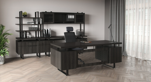 A Showroom Double Pedestal Desk, Credenza and Hutch. Office Suite with matching Bookcase and Lateral File and More…